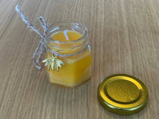 Bivokslys i Glasskrukke med Gullfarget Bie-Pendant og Lokk – Trepakning